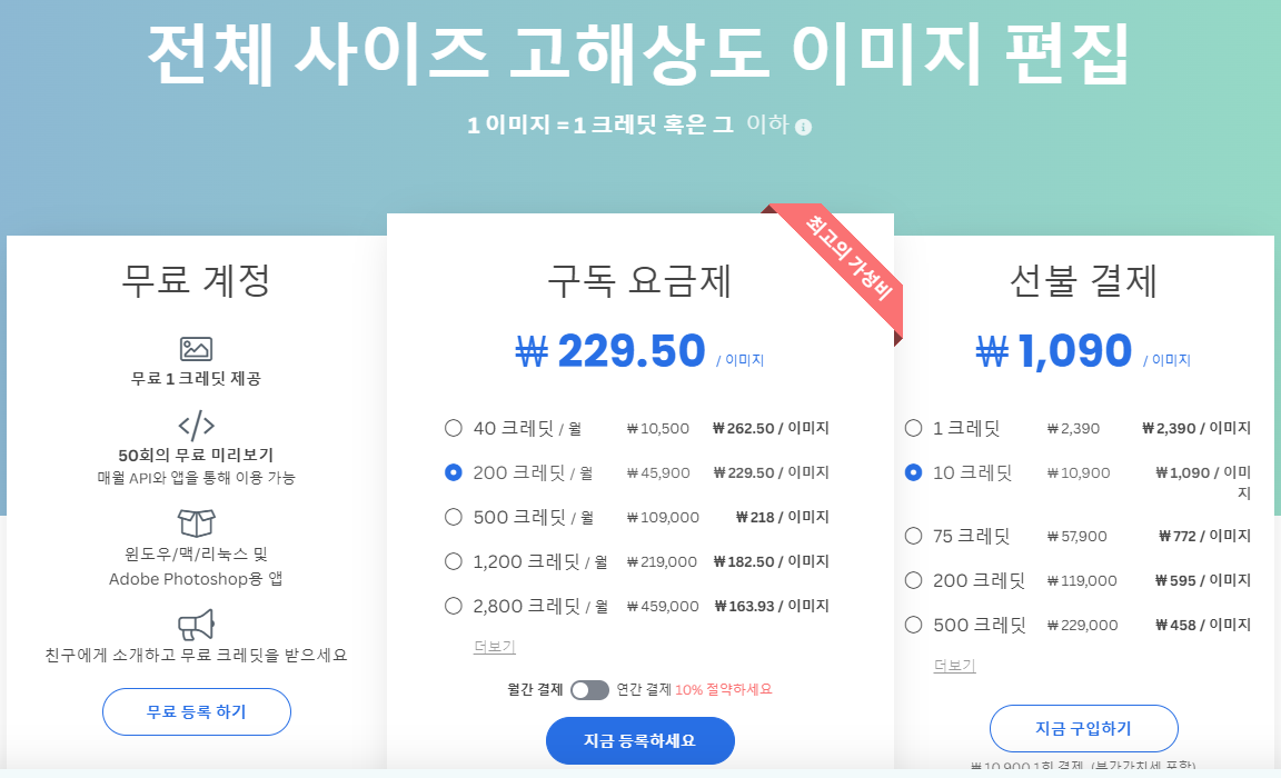그 이상의 해상도는 1크레딧이 필요하다고 되어 있네요.