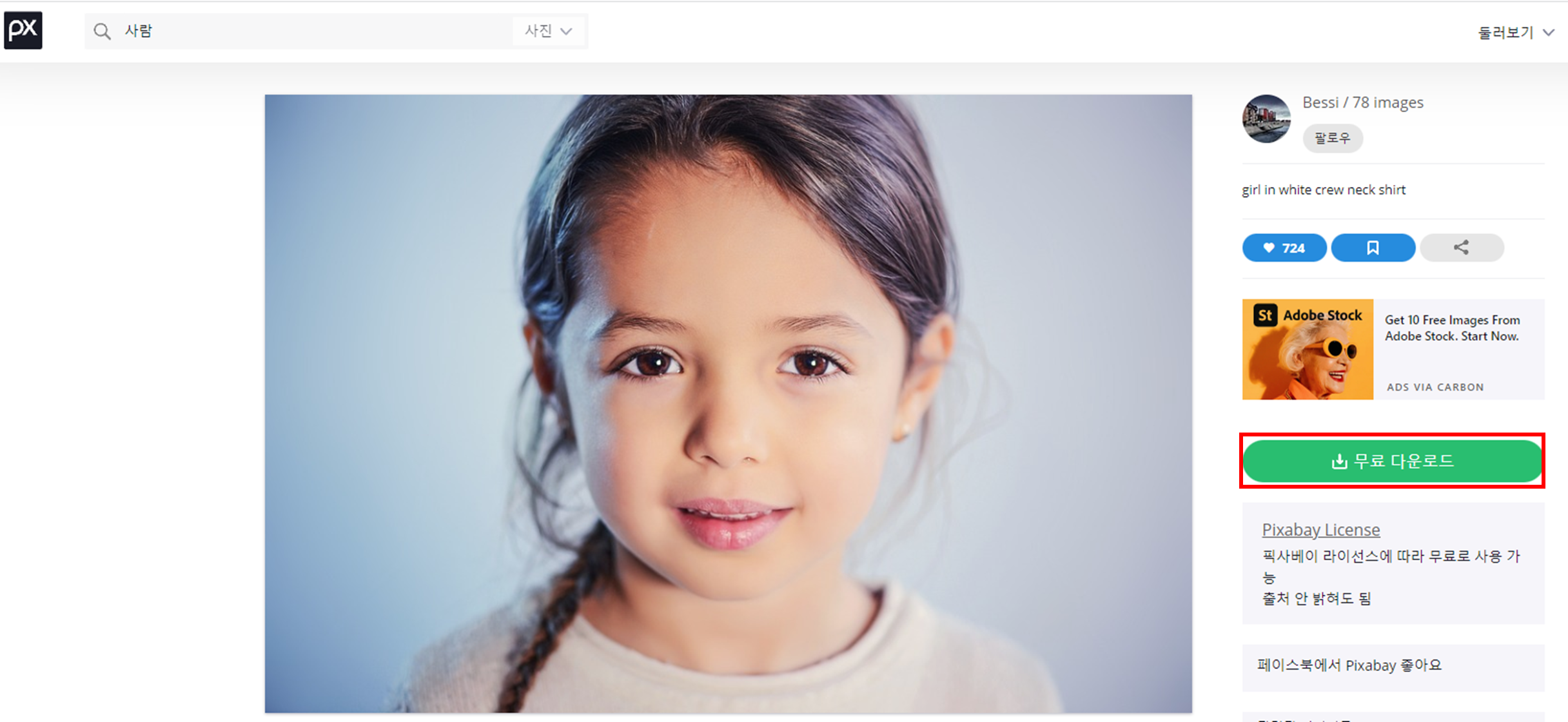 이미지에 사람이라고 검색하니 귀여운 여자아이 사진이 하나 뜨는데요.
