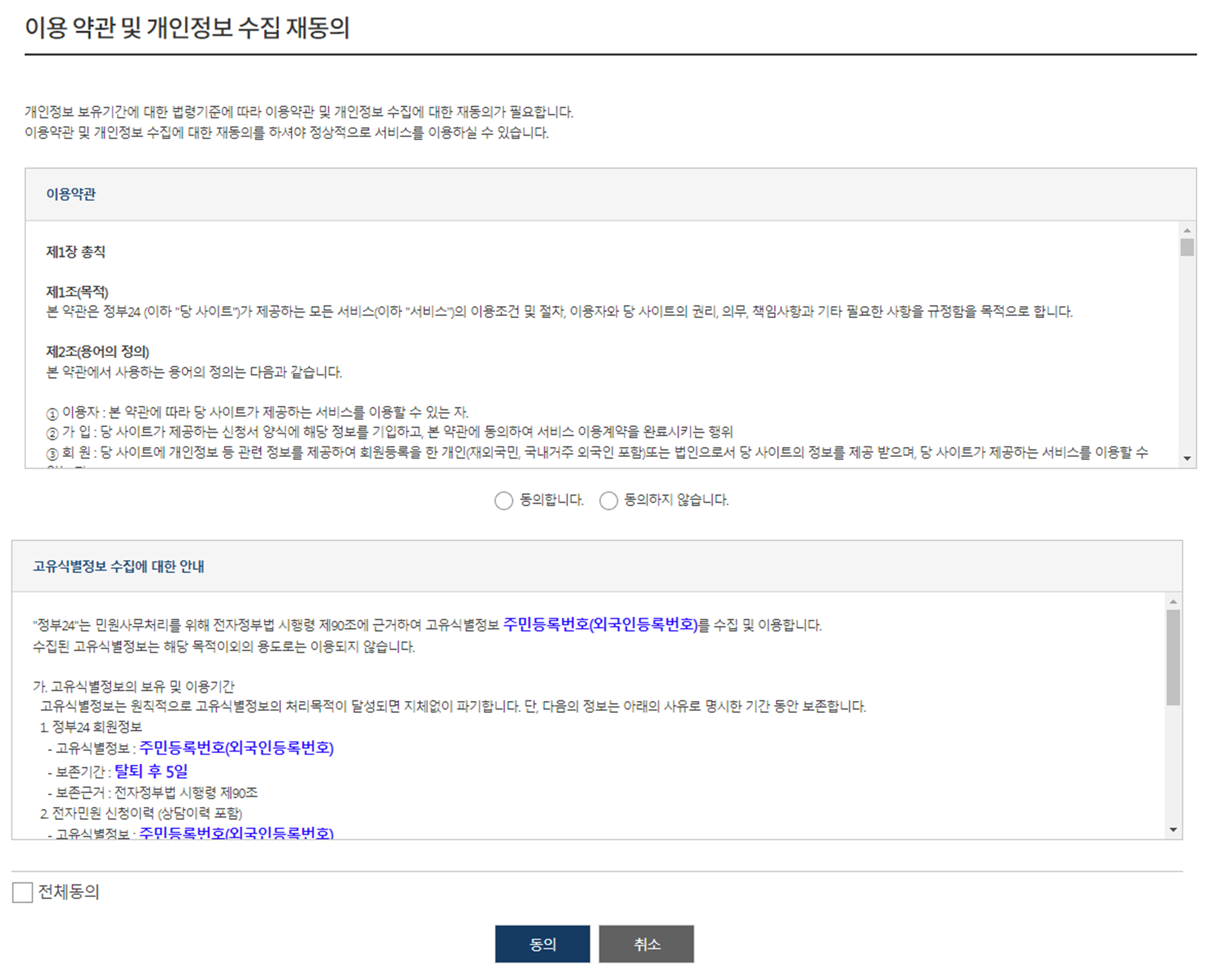 다음에 아래와 같이 이용약관 동의를 해주면..
