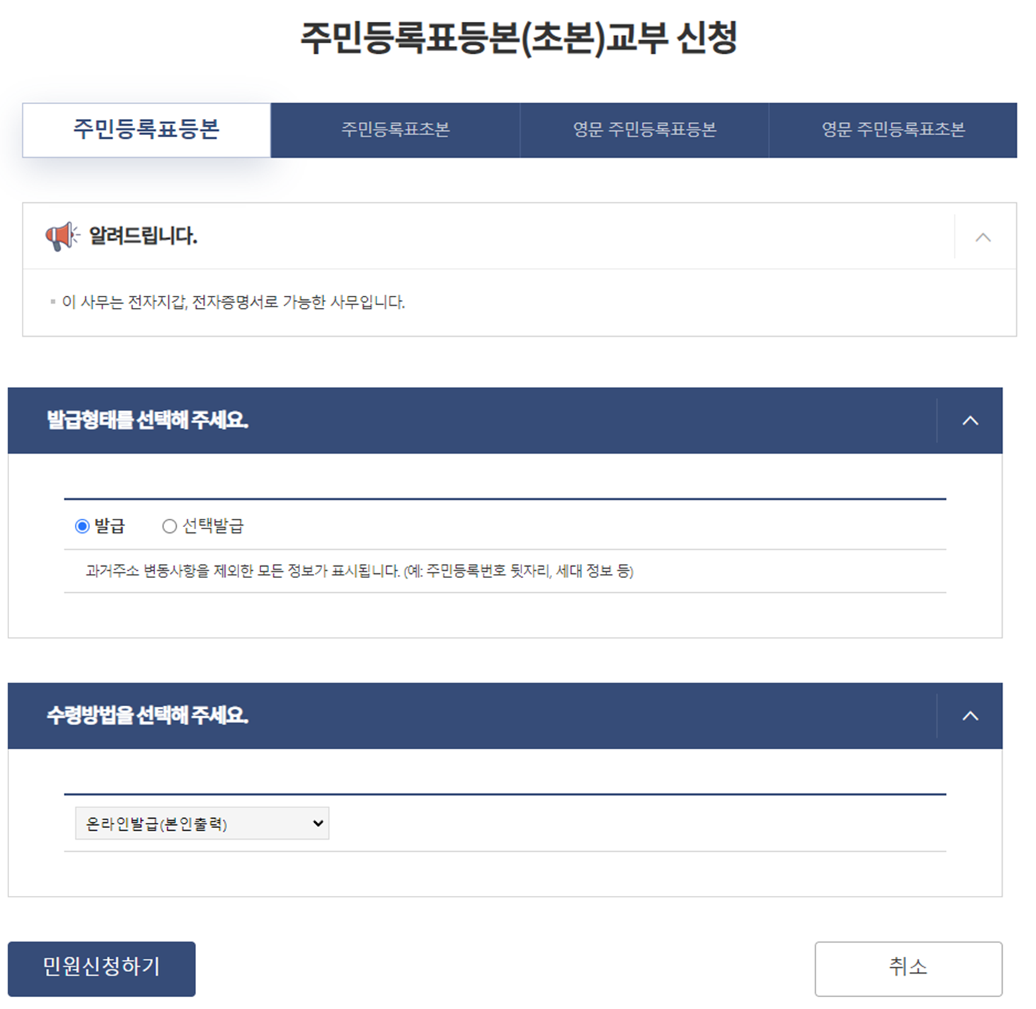요즘은 동사무소를 가도 무인발급기에서 뗴시죠. [약간의 수수료 발생.. 400원?]