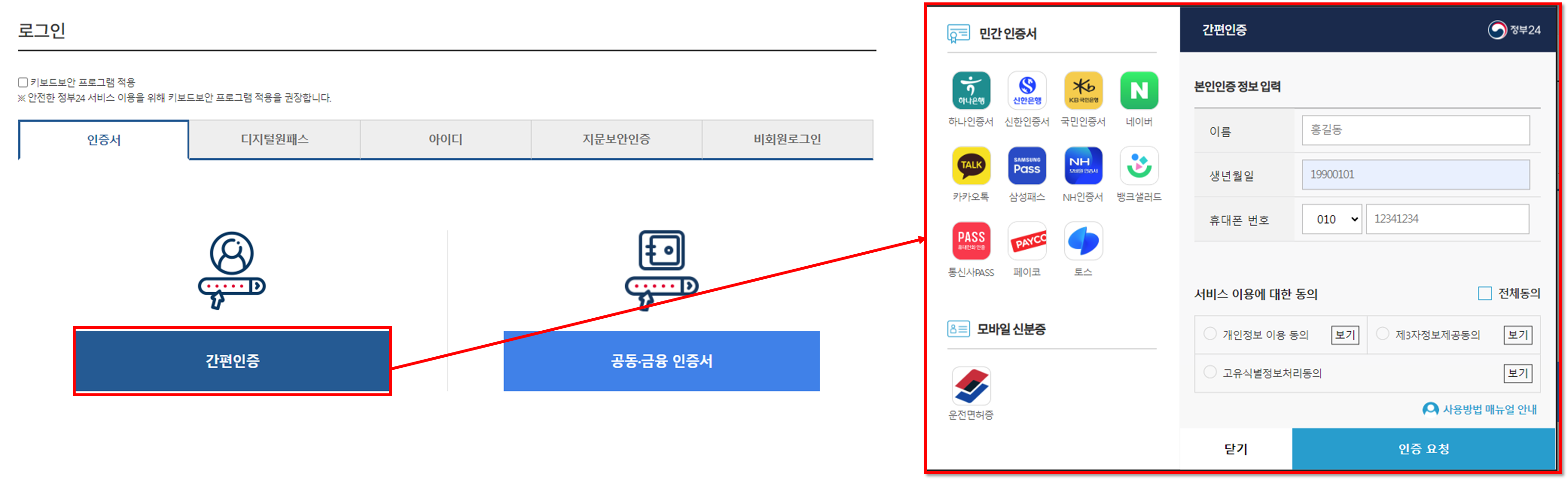 요즘은 간편 인증이 참 잘되어 있는거 같아요.