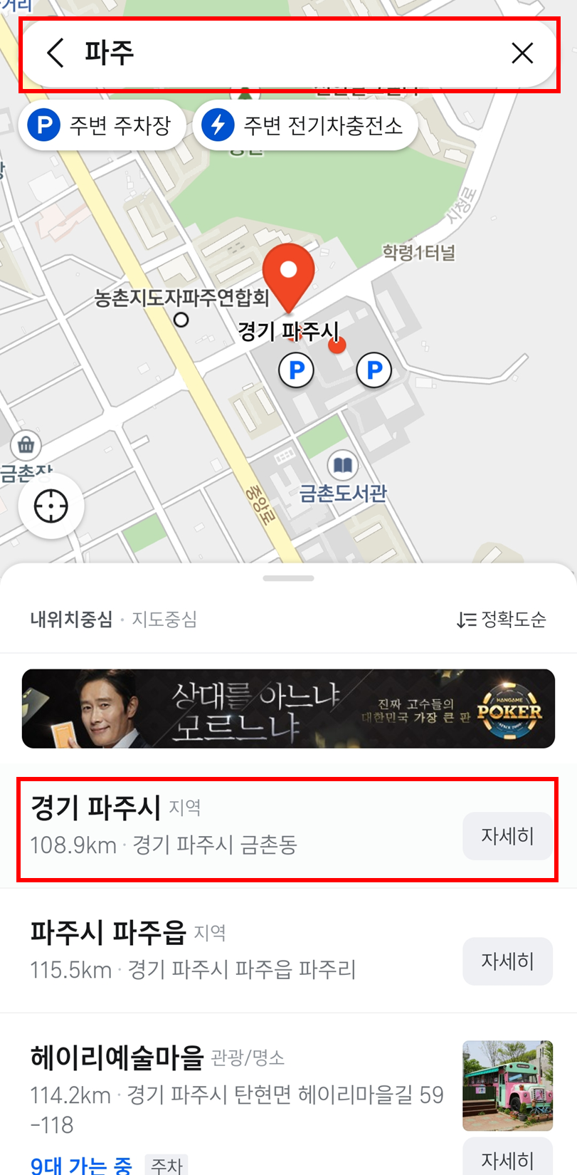 저 장소들 중에서 가야하는 장소를 먼저 눌러줍니다.