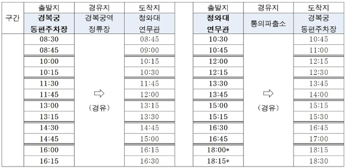 운행 시각도 30분 단위로 1대씩 운영하던 것에서 2대를 투입하기로 했다고 합니다.