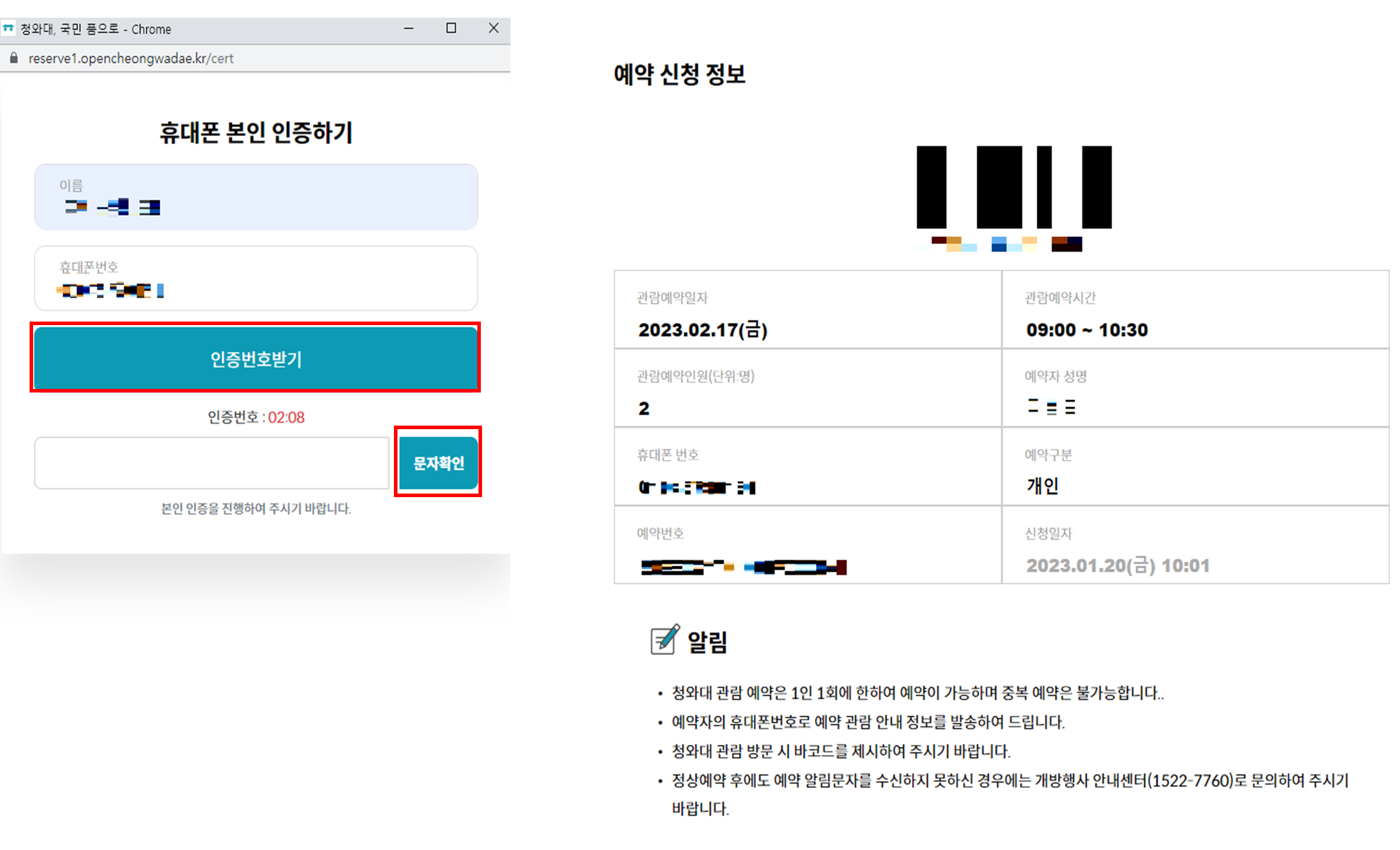 한번의 휴대폰 인증으로 바로 예약이 되네요.!