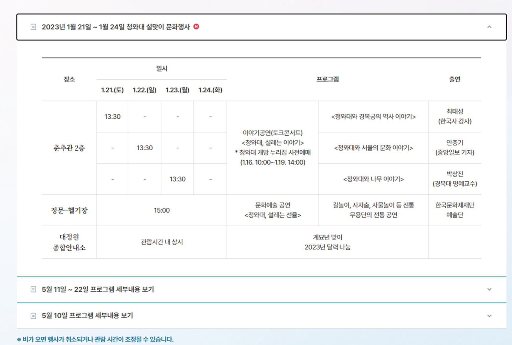 이번 설 기념 행사도 있고 평소에도 하는거 같으니 확인하시고 시간될때 한번씩 가서 봐도 좋을거 같네요.