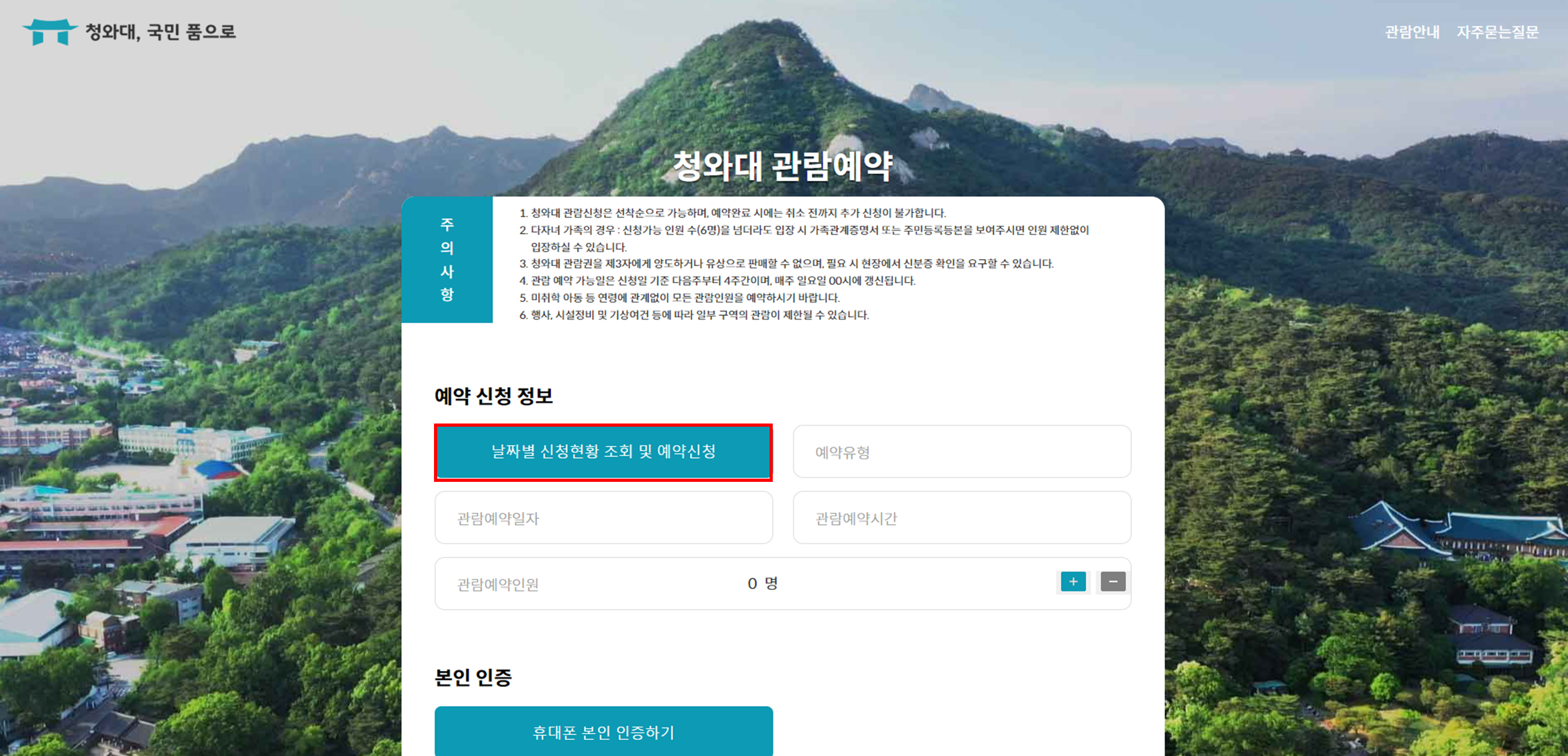 이전에 말씀드린대로 청와대 예약하는 방법을 가지고 왔는데요.