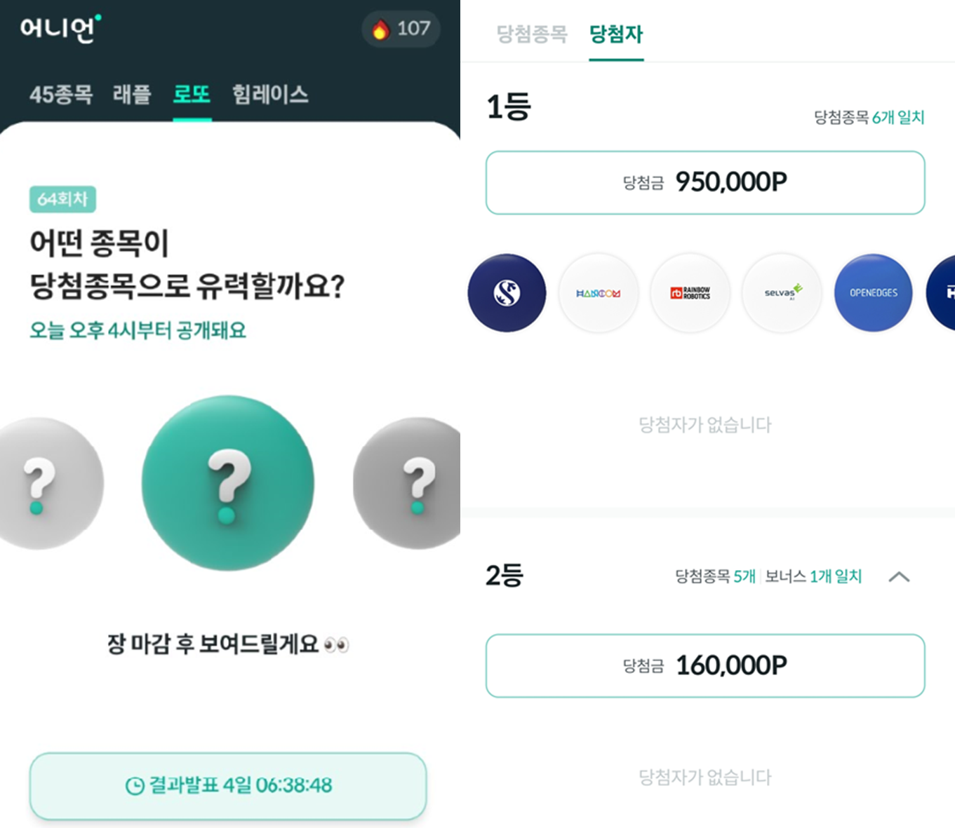 아래에 보면 종목을 맞추면 당첨금을 주는건데요.