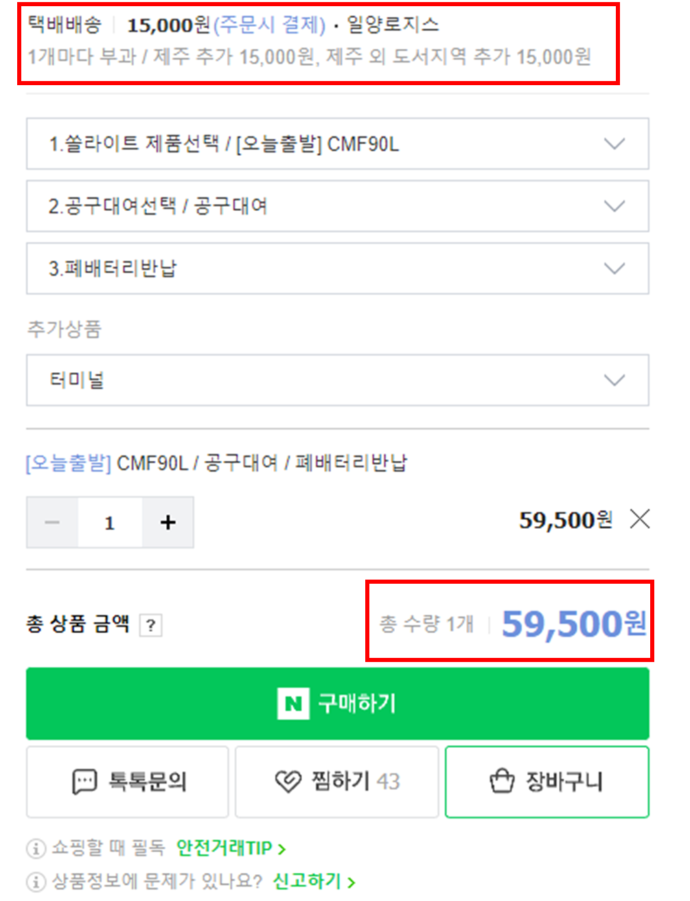 그리고 공구 대여여부도 있는데 저는 공구대여 했습니다.