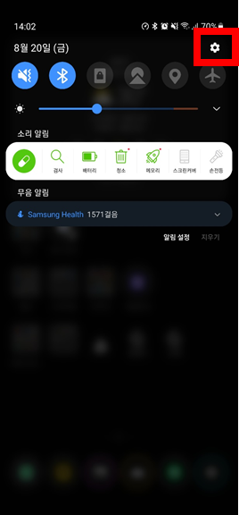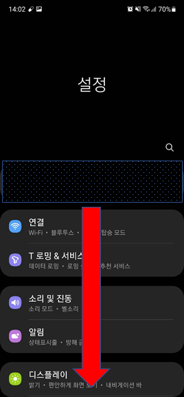 1. 휴대폰 상단부분을 아래로 끌어 내려줍니다.