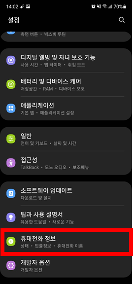 3. 설정에서 밑으로 쭉 ~~~ 내려서 휴대전화 정보로 들어갑니다.