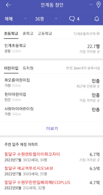 주변 학교 정보와 입주예정 아파트들도 나오고
