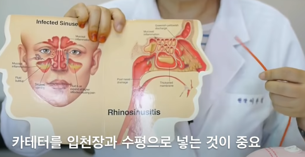 카테터를 코 안으로 삽입해서 안에있는 농을 제거하는 방법인데요.