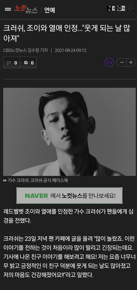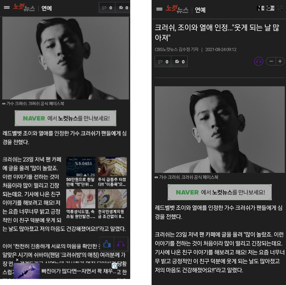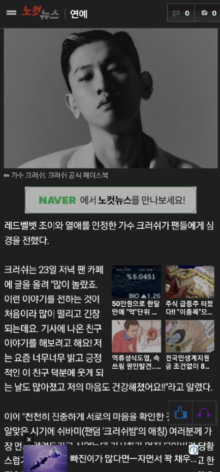 먼저 유니콘을 끄고 핫한 크러시 연애 기사에 접속해 봅니다.