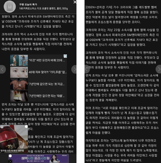 제가 직접 사용하기전/후 인터넷 광고가 어찌 나오는지 보여드릴게요.
