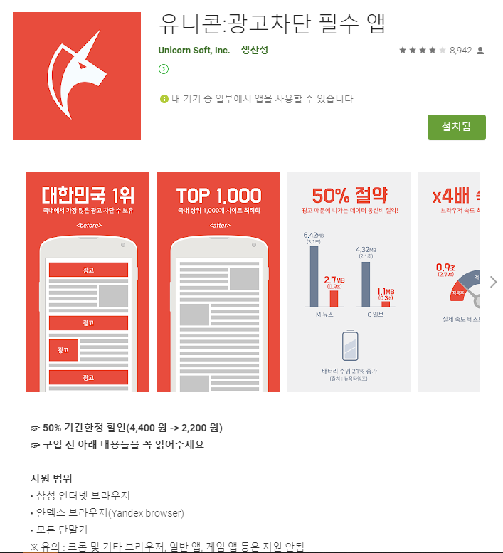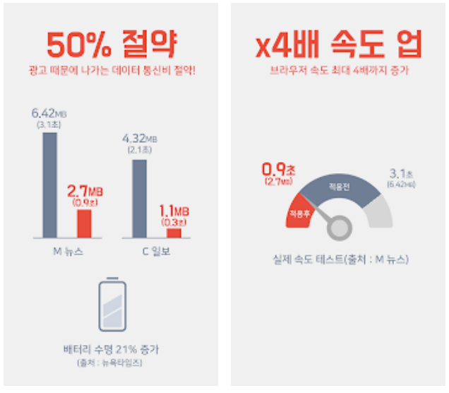 광고가 이만큼 차단이 된다는건 그만큼 인터넷 속도도 빨라진다는 이야기죠.