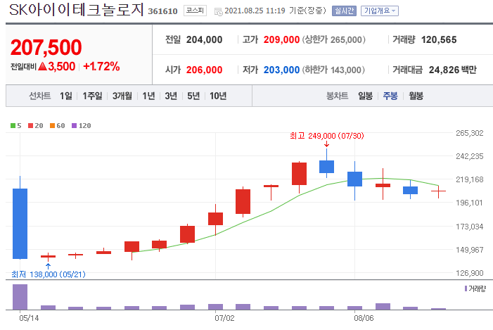 상장 당일 주당 21만원에 매도하였습니다. [42만원]