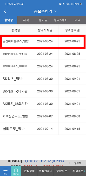 자 그럼 실전편으로 제가 일진하이솔루스 청약하는걸 보여드리고 마무리할게요.