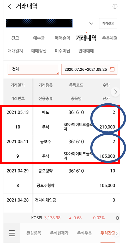 청약은 105,000에 진행해서 2주를 받았구요 [21만원]