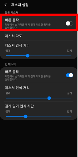저기 짧은 제스처의 빠른동작이 문제인데요.