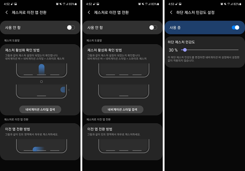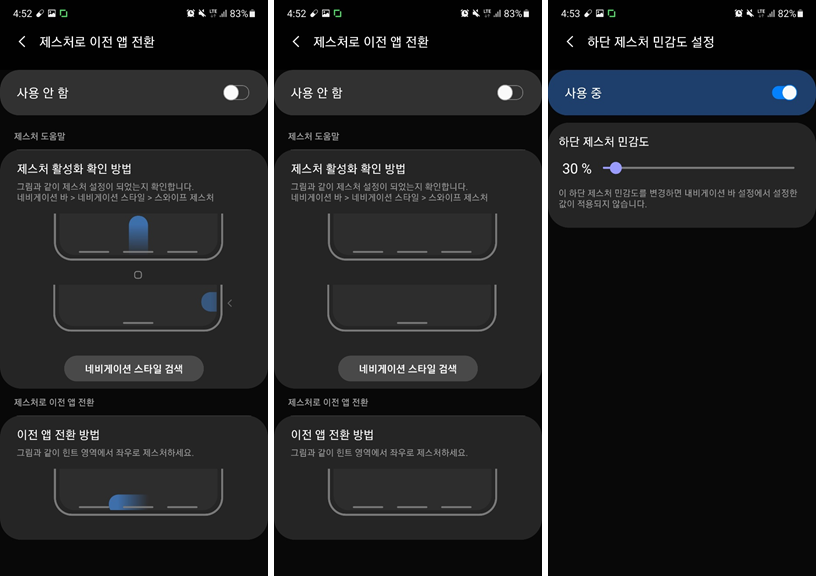 아래 제스처 설정은 One Hand Operation+ 아시죠!?