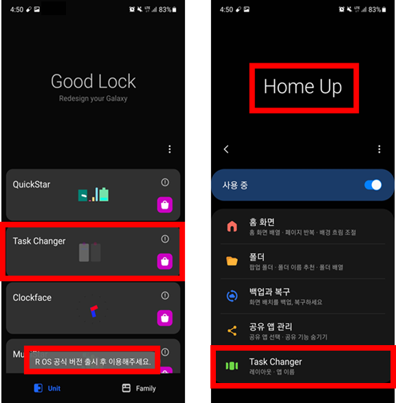 이번에는 Good Lock 의 다른 기능인 홈업 _ 테스크차져 기능을 가지고 돌아왔습니다.