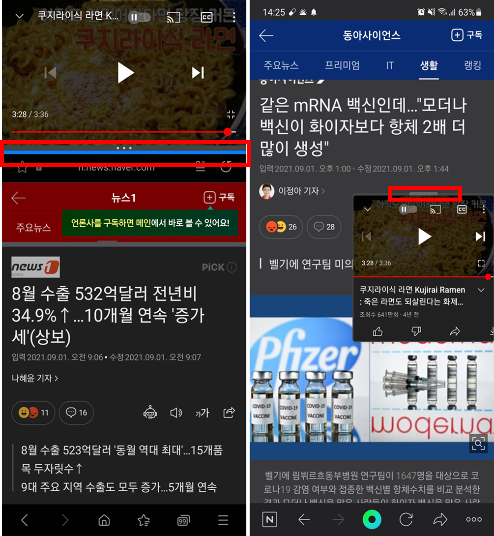 팝업 화면으로 띄워서 뉴스를 보면서 영상 시청도 가능합니다.