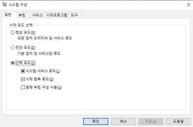 사용하지 않는 프로그램들은 체크를 풀어 주시는게 좋아요.