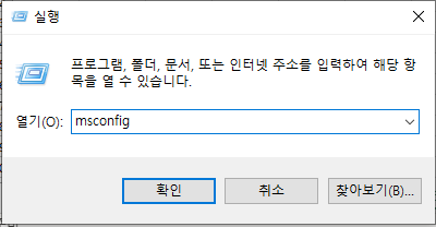 2. 윈도우키와 R버튼 동시에 눌러준 후 MSCONFIG 입력
