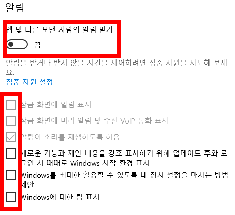 - 앱 및 다른 보낸 사람의 알림 받기 → 끔