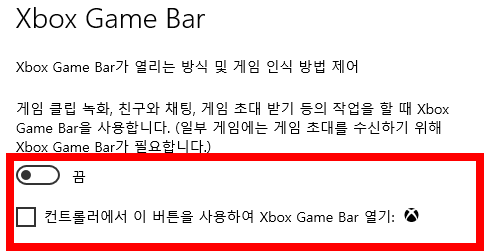 - xbox Game Bar 열리는 방식 및 게임 인식방법 제어 → 끔