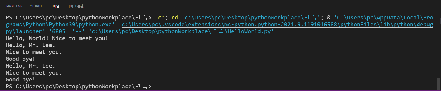 print("Hello, Mr. Lee.\nNice to meet you.\nGood bye!")