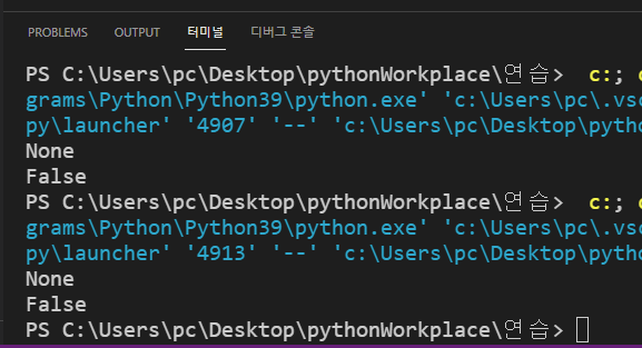 C언어의 null과 비슷한 의미이며 파이썬에서 None이라는 값도 하나의 객체에 해당합니다(NoneType).