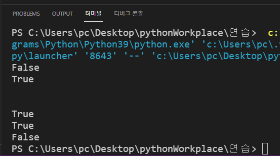 참고로 파이썬에서 불(Bool) 자료형은 True와 False를 나타내며 첫 글자는 항상 대문자로 사용해야합니다.