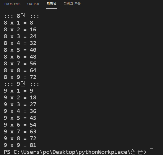 for dan in range(2, 10): # 2 ~ 9