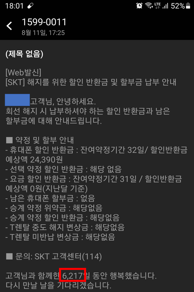 고민고민하다가 약 17년동안 사용하던 SKT를 해지하게 되었습니다..ㅜㅜ