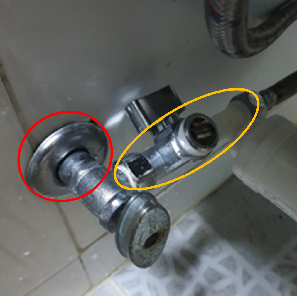 [노란색에 꽂히는 배관을 원했으나.. 빨간색에 꽂아야함..]