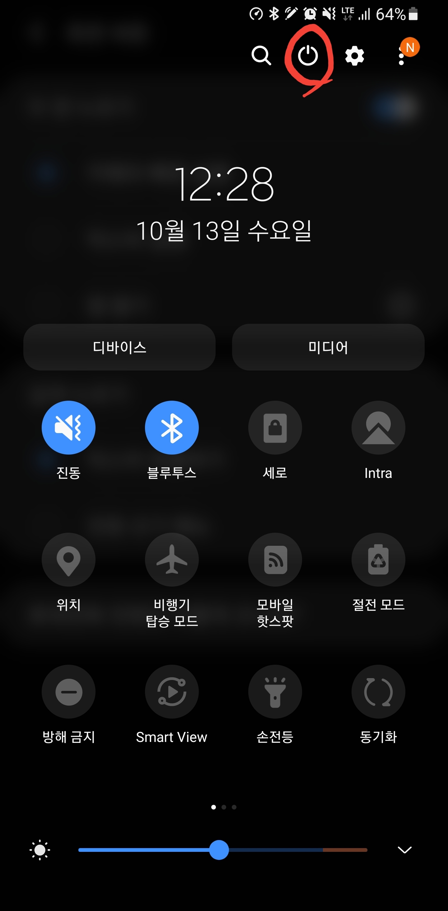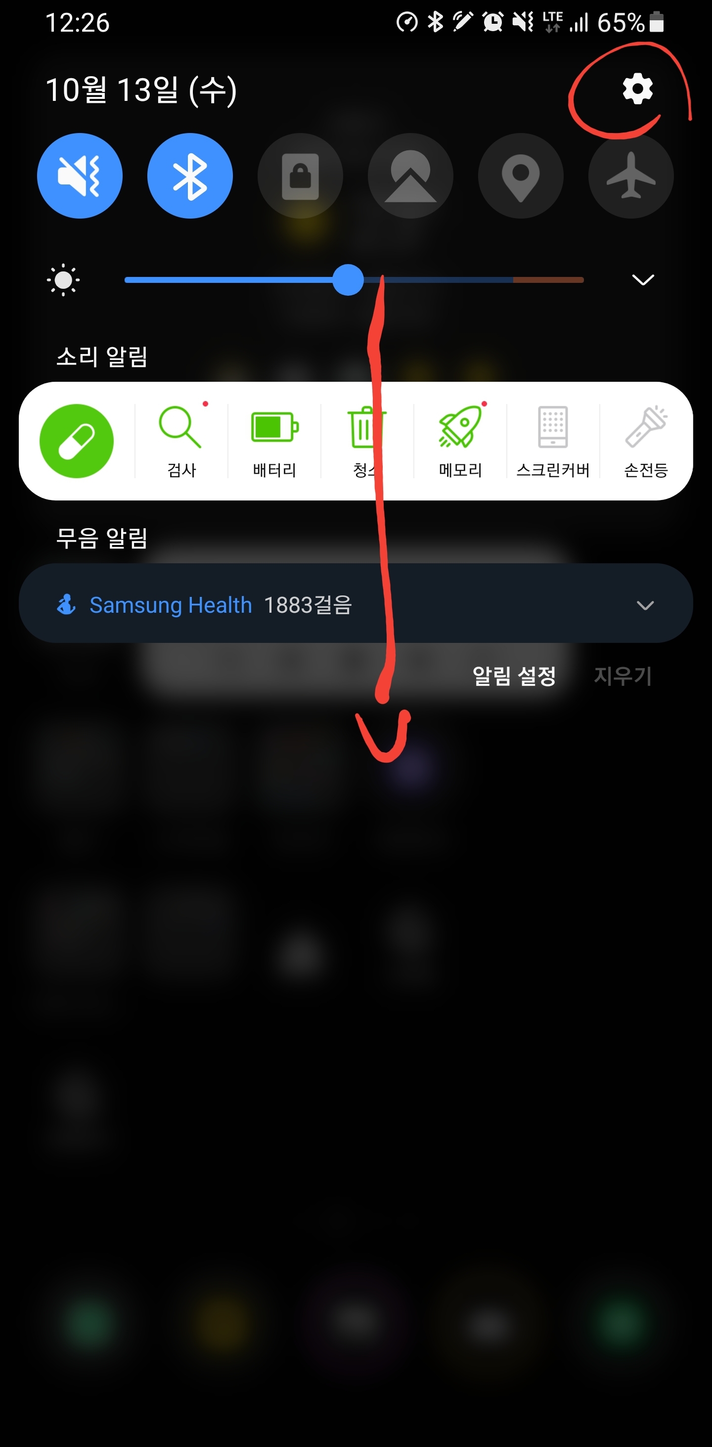 아래로 슬라이드해주면 설정창 나오는거 이제 다 아시죠?