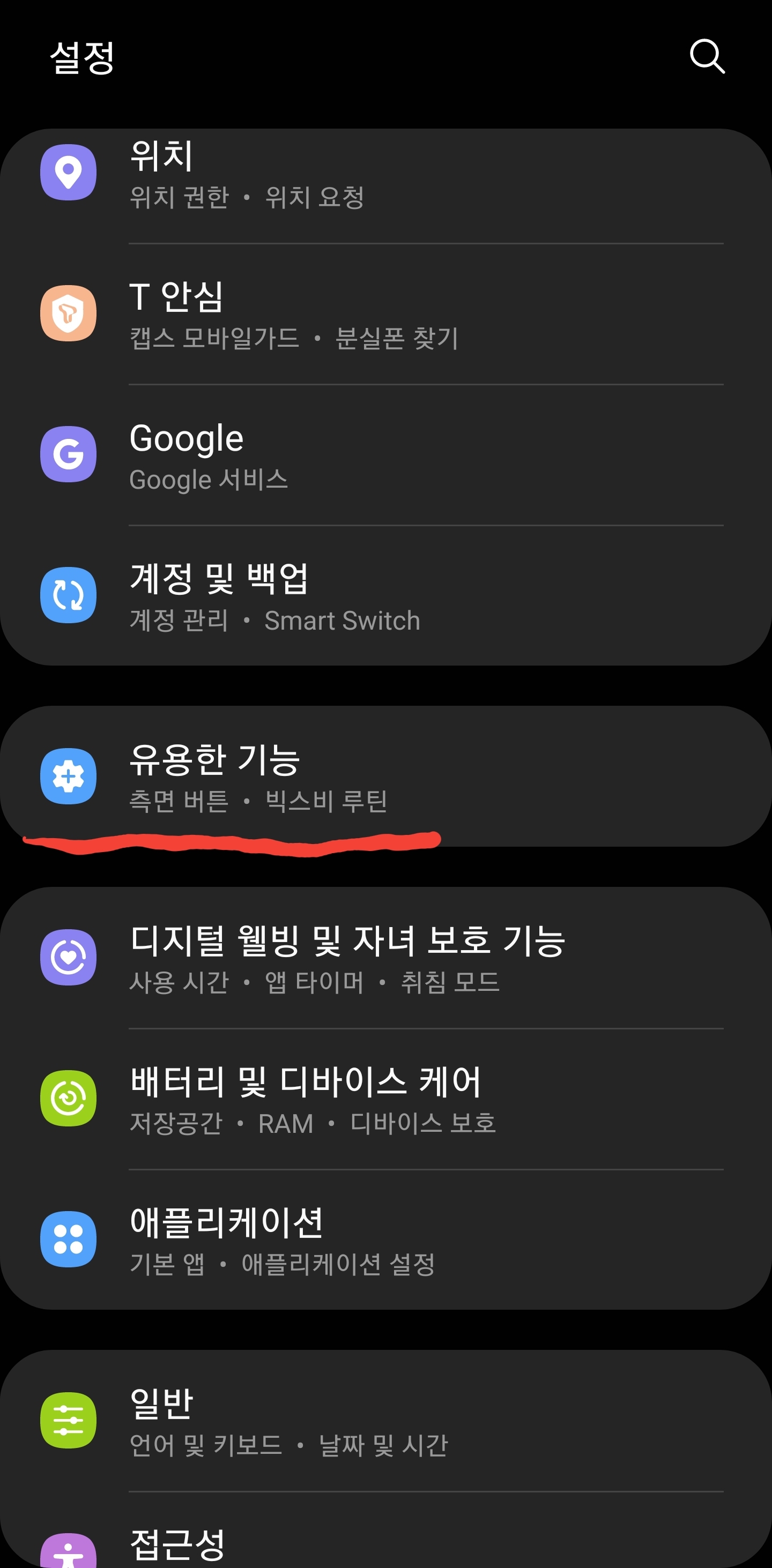설정에서 아래로 내리면 유용한 기능이 있습니다.