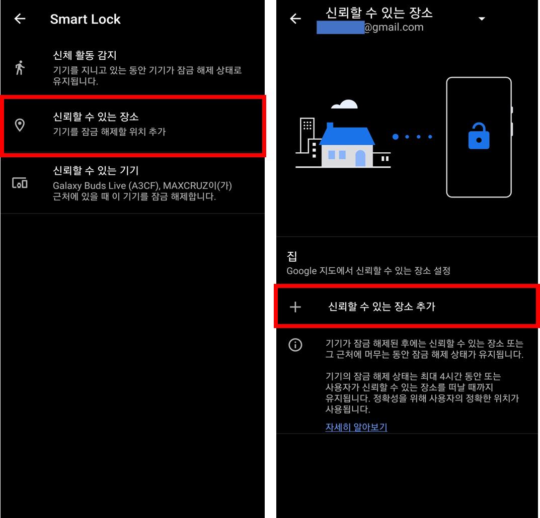 잠금화면에 들어가면 Smart Lock 이 보입니다.