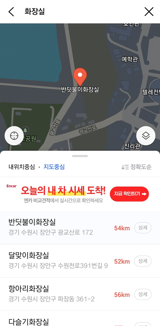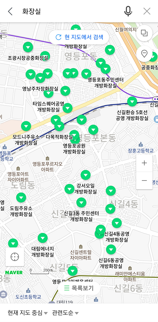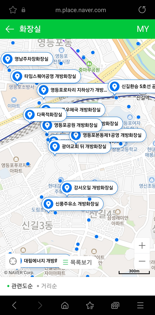 아래에 보시면 네이버에 화장실이라고 검색할 결과물인데요.