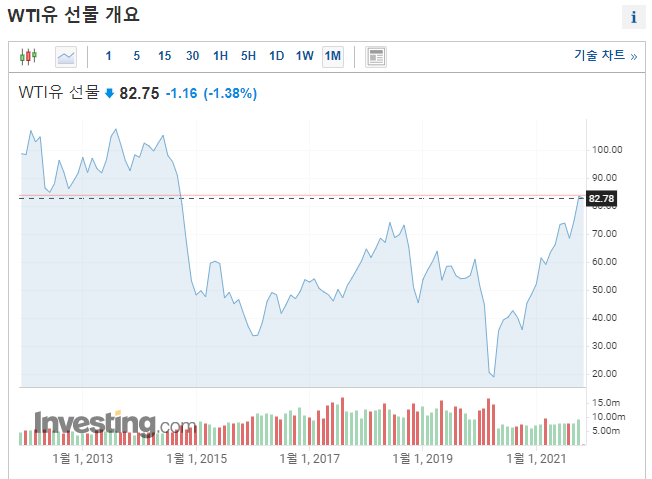 여기서 하나 더 중요한건 WTI 가격인데요.